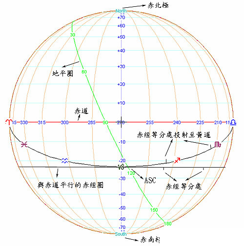 此宫位制最重要的逻辑,就是用时间的量度来等分日圈半弧藉以分割宫位。