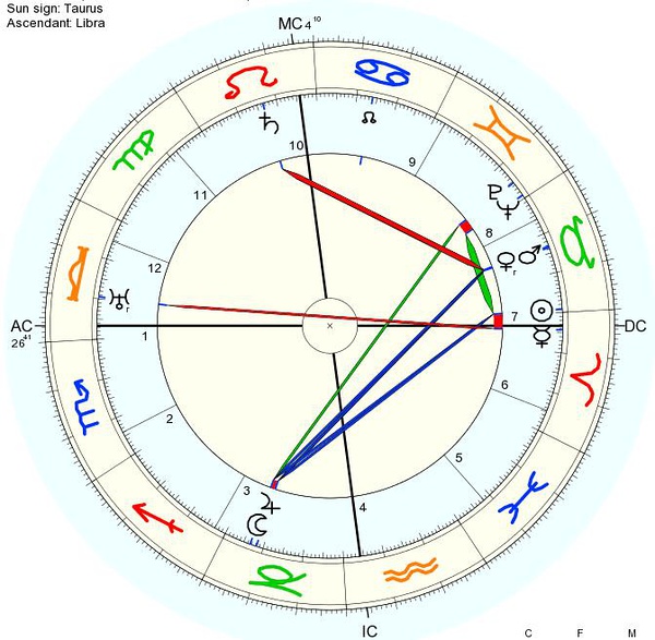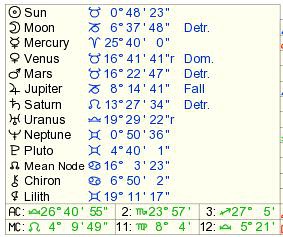 他的日、月、木、海的Monomoiria Ruler全部为金星!!金星为5、12宫主,金星的Monomoiria Ruler为月亮!月亮落10宫,(金、月在Monomoiria Ruler的层面互容)
