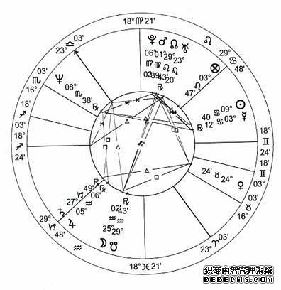 在这个例子里我们可以看到原始恒星占比起黄道法要重要且具体得多,因为它为我们展现了大量的重要恒星信息。太阳和月亮牵连着非常重要的吉星,比如:Sirius,Regulus和Rigel,但也同时联系着困难的恒星如:Menkar和阴云密布的Facies。