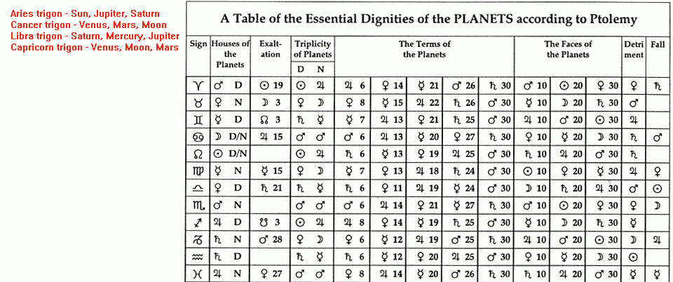 关于triplicity(三位一体)和terms(区间)还有face有专门的表格可以查,如下图。