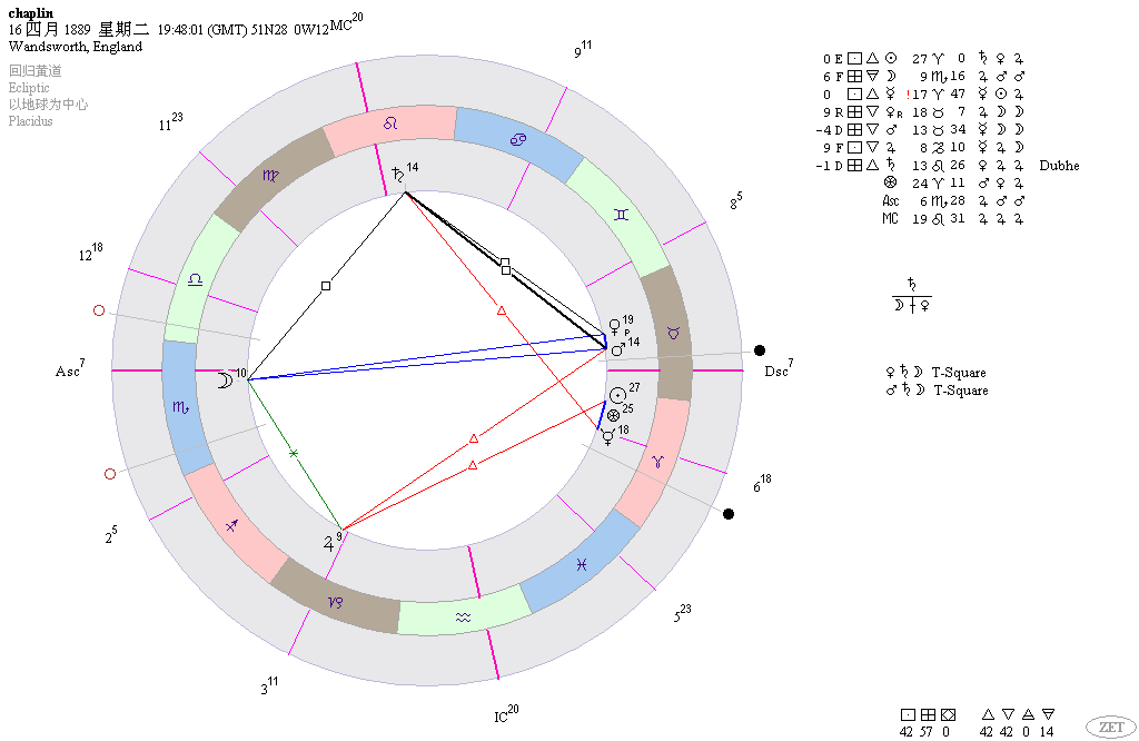 下面我将用查理.卓别林的星盘作为例子来示例: