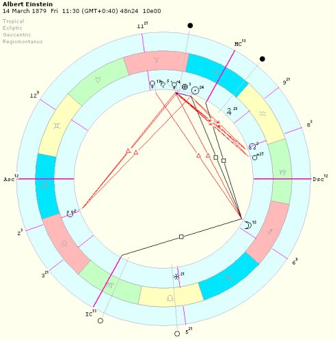 爱因斯坦的太阳是生命主,火星与太阳构成六分相位,因此火星为寿主星。其寿限的计算如下: