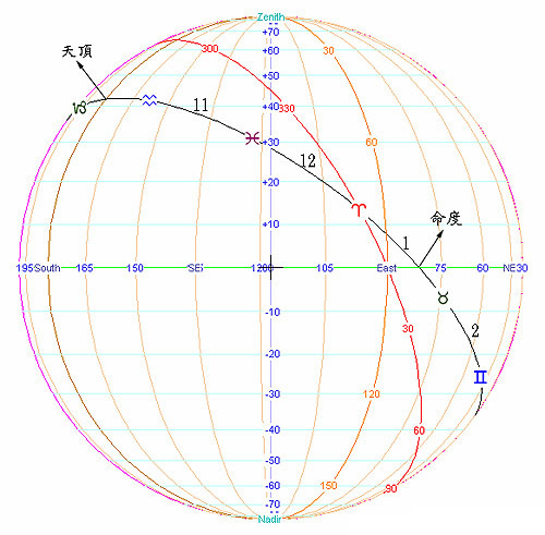 很多占星学习者面对天顶的落点与实际的十宫会产生认定的困扰。实际上以整宫制来论,笔者认为天顶与命度的意义大概只剩下推运计算的用途,在论命上整宫制的 十宫其意义大于天顶,因为十宫是一宫起算的第十宫。这点与四分仪制分宫法定义天顶为十宫头不仅在天文意义上完全不同,在哲学逻辑的意义上也不同。因为古人 认为命宫起算的第十宫才是象征地位,十宫的希腊文Mesuranima意谓天球的顶端,古人认定一宫起算的十宫才是最高的位置,这样的哲学意涵不会因为科 学演进而失去它的意义。这种分宫制用法在世纪前巴比伦时代就已经存在,而且还深远的影响其它各地区的占星学如七政四余。
