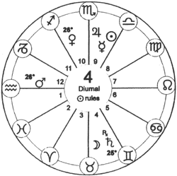 ×îºó¸öͼÀý5ͬÑùÒ²À´×ÔÕ¼ÐÇʦDorotheusµÄ¡¶Carmen Astrologicum¡·Ò»ÊéÖС£¸ÃÅÌΪÖçÉúÇÒÌ«ÑôλÓÚ°×Ñò×ù¡£Òò´ËÊ×ÏÈÌ«ÑôÊÇÖ÷Òª²Î¿¼¶ÔÏó£¬ÇÒΪ×ÔÉíÊ×ÒªµÄÈý·ÖÖ÷ÐÇ£¬°×ÑòΪÆäߪÉýÐÇ×ù£¬ÂäÈë11¹¬Ò²ÊôÁ¼ºÃλÖá£Ä¾ÐÇÊǵÚ2¿ÅÈý·ÖÖ÷ÐÇ£¬ÂäµÚ10¹¬Ç¿¹¬Ö®ÖУ¬²¢ÇÒλÓÚÆäÊØ»¤µÄË«Óã×ùÄÚ¡£µÚ3¿ÅÈý·ÖÖ÷ÐÇÔòÊÇÍÁÐÇ£¬Ç¡Çɸ߹ÒÖÐÌì¡£“´ËÈ˱ØÏíÅӴ󲯏»¡£”DorotheusÈçÊÇ˵£»µ«ËûͬÑùÒ²¸øÓèÁ˾¯¸æ£º“µ«ËûµÄϳ¡±ØÐ×£¬ÒòΪ»ðÐÇλÓÚÌìµ×4¹¬ÄÚ£¨×¢£º4¹¬ÕƹÜËÀºóÊÂÒË£©¡£¶ø´ËÈ˽á¾ÖºÍËÀÍöʱµÄ×´¿ö¸Ã²Î¿¼½ðÐÇ£¨×¢£º´ËÅÌ4¹¬Îª´¦Å®×ù£¬½ðÐÇÊÇÊ×ÒªÈý·ÖÖ÷ÐÇ£©£¬½ðÐÇÔÚ´ËÐÇÅÌÖÐλÓÚÏóÕ÷ÔÖÄѵÄϽµ¹¬£¨Cadent£©——µÚ12¹¬ÄÚ¡£”