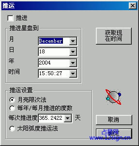 2¡¢È»ºóÔÚ¶Ô»°¿òÖÐÊäÈëÄãÏëÒªÍÆÔ˵Äʱ¼ä£¨±ÈÈçÄãÏëËã24ËêµÄÔËÊÆ£¬Ö±½ÓÊäÈë24ËêÉúÈÕµÄÈÕÆÚÏàͬµØµãÏàͬʱ¼ä£©¡£