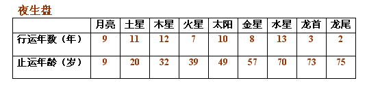 7´óÐÇÌåºÍÁ½¸ö½»µã¶¼ÓÐ×Ô¼ºµÄÐÐÔËÄêÊý¡£È磬̫Ñô10Ä꣬½ðÐÇ8Ä꣬ˮÐÇ13Ä꣬ÔÂÁÁ9Ä꣬ÍÁÐÇ11Ä꣬ľÐÇ12Ä꣬»ðÐÇ7Ä꣬ÁúÊ×3Ä꣬Áúβ2Ä꣬×ܺ͹²75Ä꣬¼´Ò»¸öÍêÕûµÄÐÐÔËÖÜÆÚ¡£