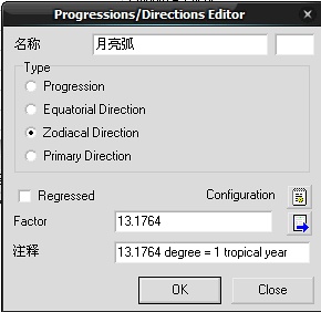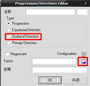 3.首先选择Zodiacal Direction(黄道向运),之后单击Factor最右边的按钮。