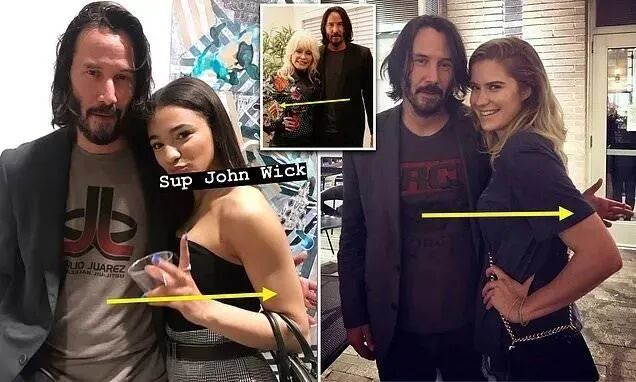 而人们却惊喜地发现:基努在所有和女粉丝的合照中,都会特意做出绅士手,